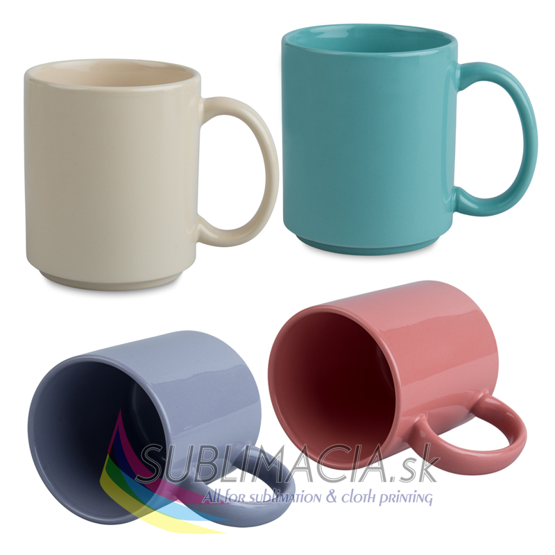 Svetlý celofarebný keramický hrnček s povrchovou úpravou určenou na sublimačnú potlač. Potlač je možná po rovnom obvode hrnčeka. Hrnčeky je možné umývať v umývačke riadu.