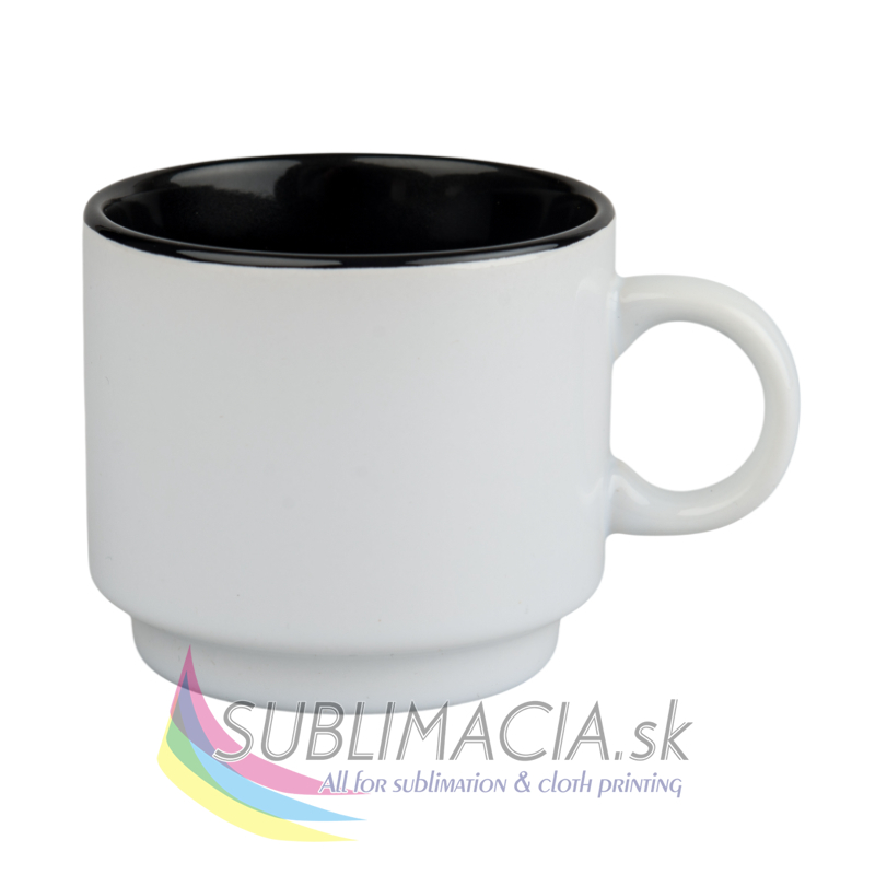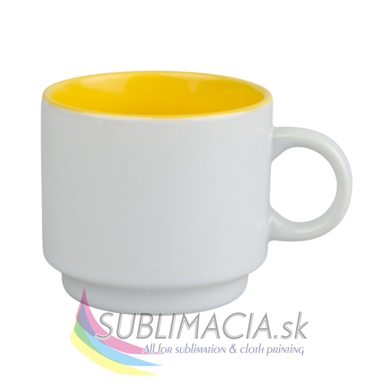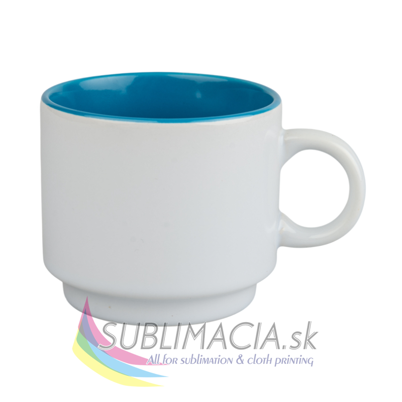 Biely keramický hrnček s farebným vnútrom s povrchovou úpravou určenou na sublimačnú potlač. Hrnček je vhodný do umývačky riadu.