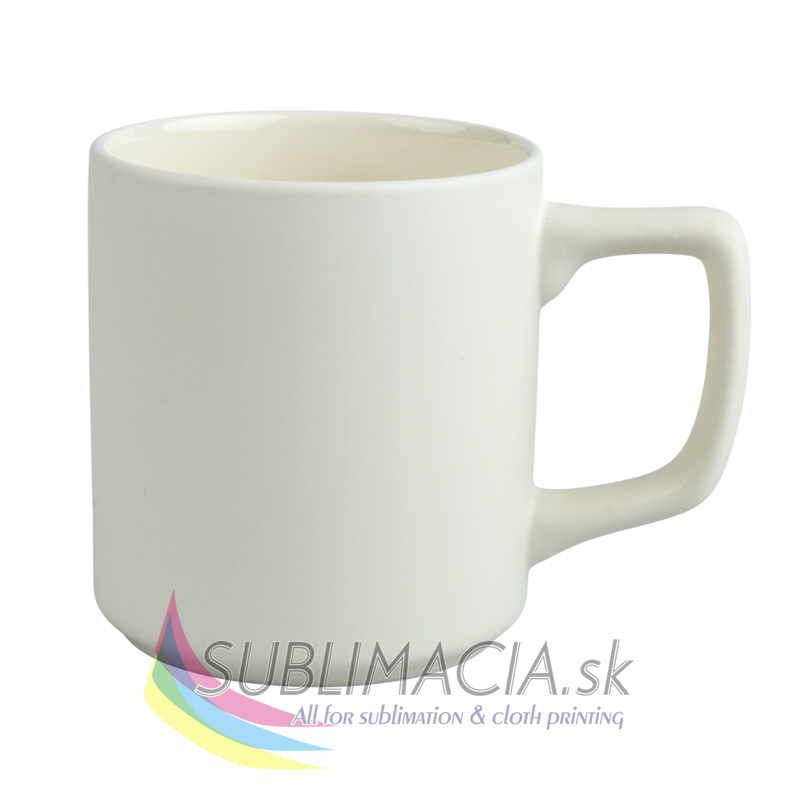 Krémový keramický hrnček s povrchovou úpravou určenou na sublimačnú potlač. Potlač je možná po obvode hrnčeka.
