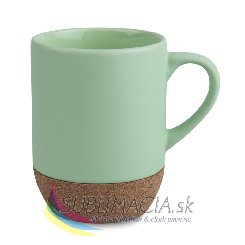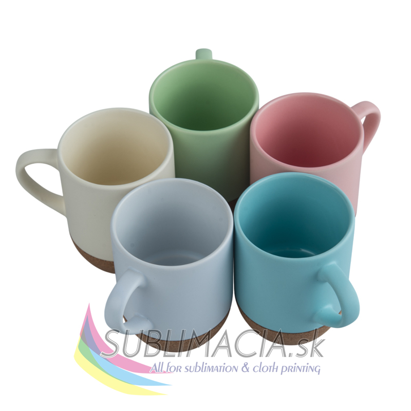 Farebný keramický hrnček s korkovým dnom s povrchovou úpravou určenou na sublimačnú potlač. Potlač je možná po obvode hrnčeka. Hrnček nie je vhodný do umývačky riadu.