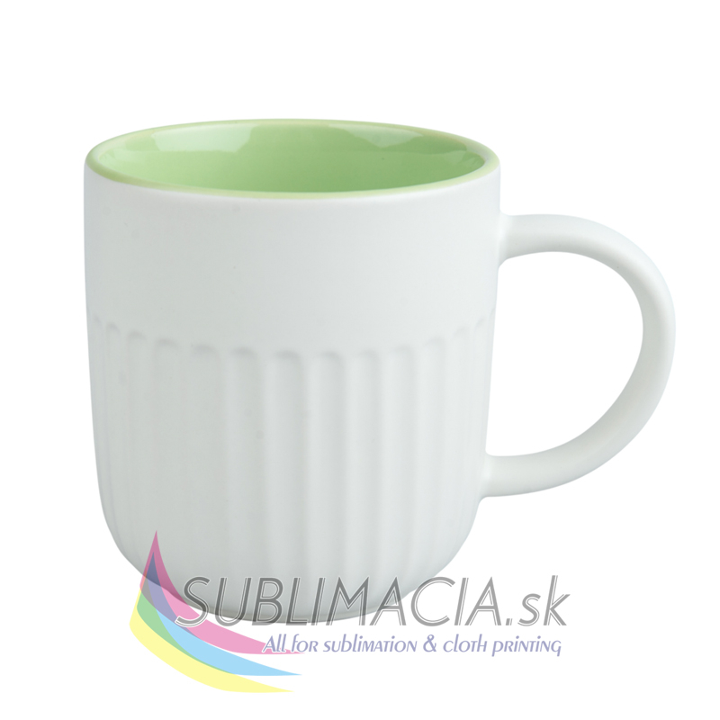 Biely keramický hrnček s farebným vnútrom s povrchovou úpravou určenou na sublimačnú potlač. Potlač je možná len po rovnej časti hrnčeka (výška cca do 3cm). Hrnček je vhodný do umývačky riadu.