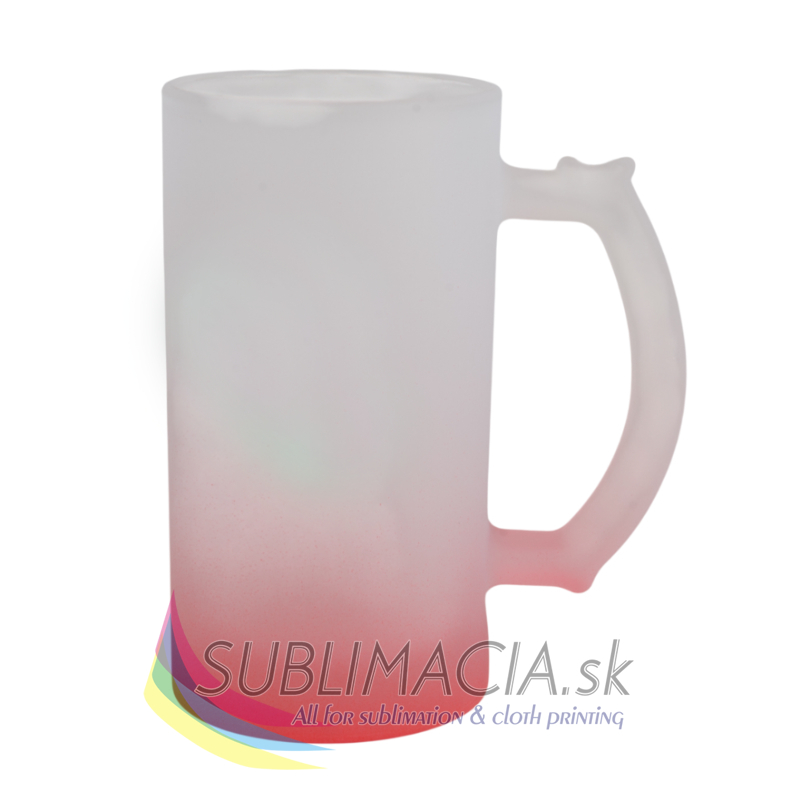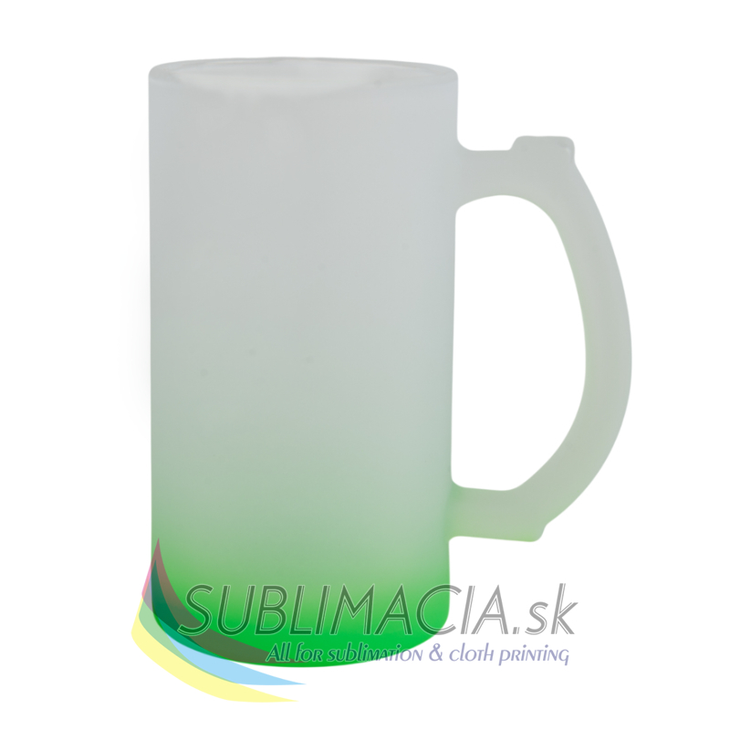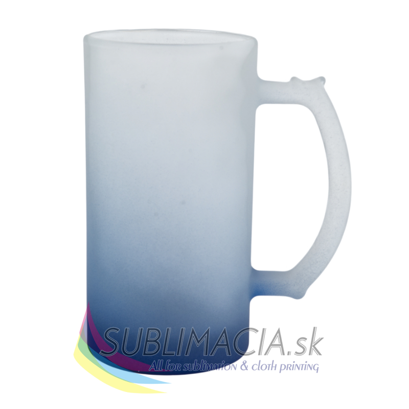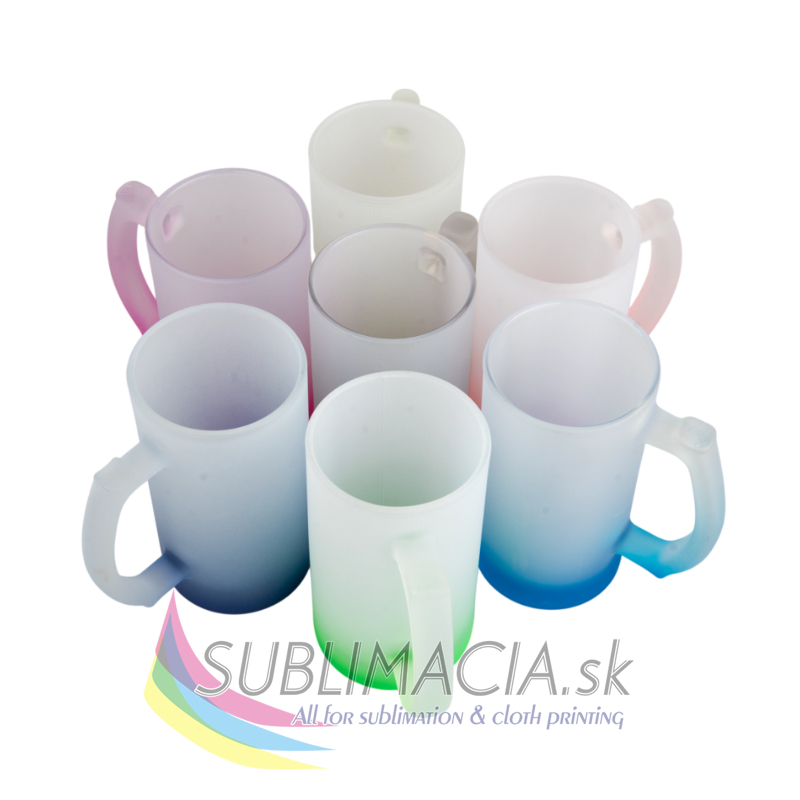 Sklenený matný pivný hrnček s farebným prechodom s povrchovou úpravou určenou na sublimačnú potlač. Potlač je možná po obvode hrnčeka. Hrnček nie je vhodný do umývačky riadu.