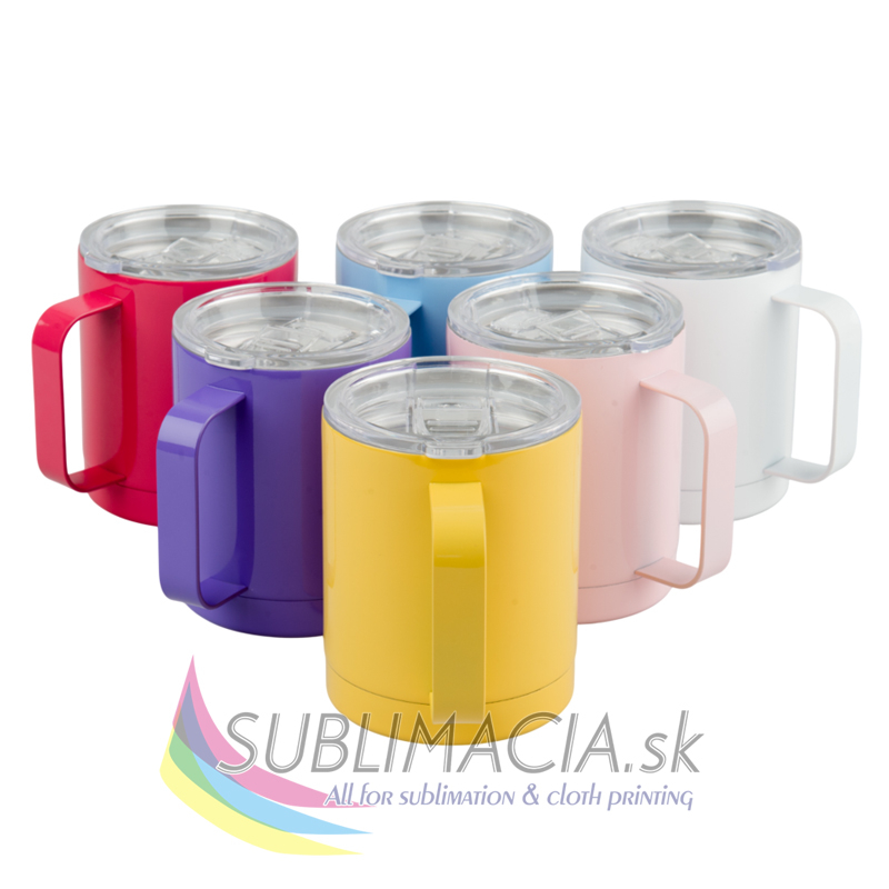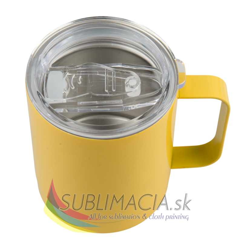 Oceľový termohrnček s uškom a vekom na sublimačnú potlač.