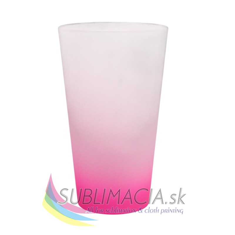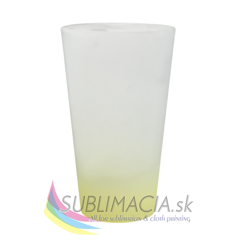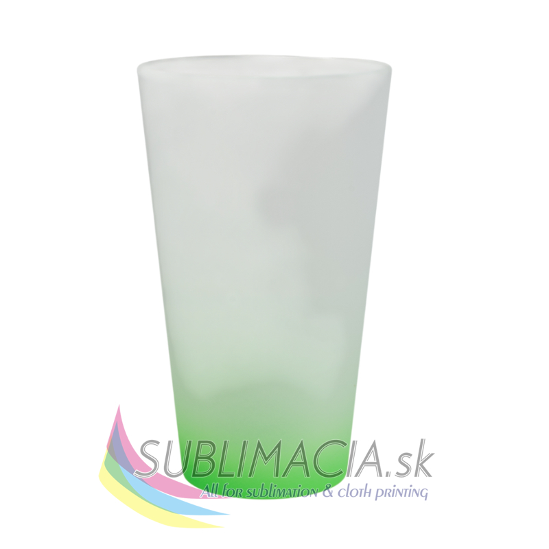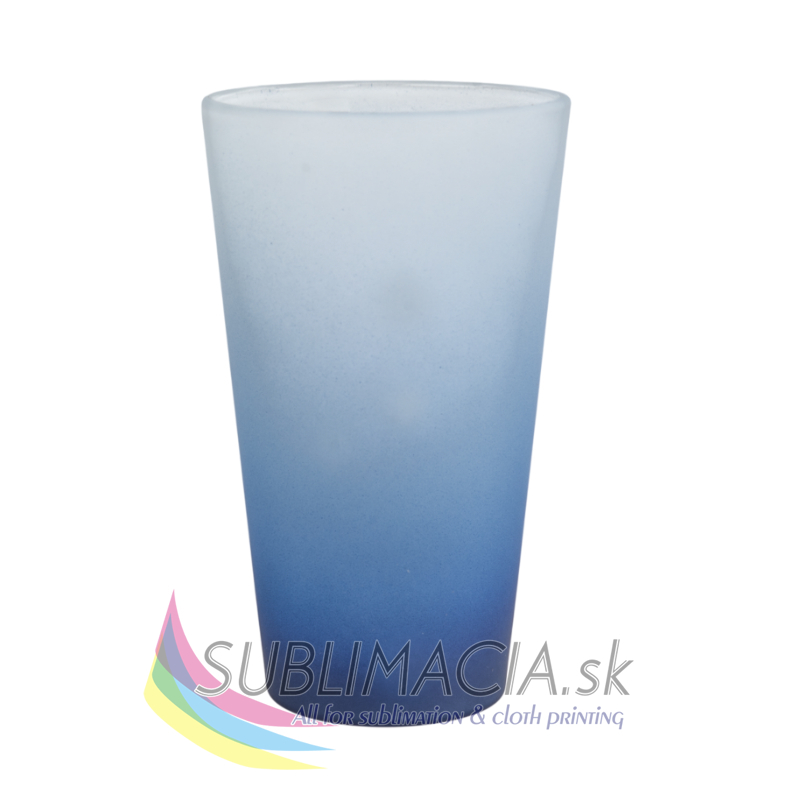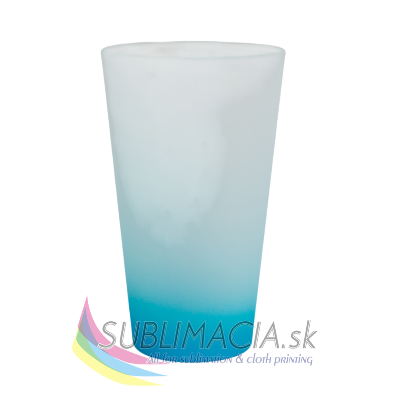 Sklenený latte hrnček s matným povrchom a s farebným prechodom. Hrnček je s povrchovou úpravou určenou na sublimačnú potlač. Hrnček nie je vhodný do umývačky riadu.
