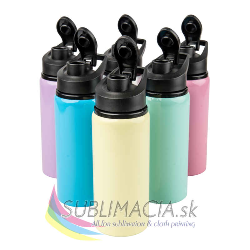 Športová hliníková fľaša s náustkom s povrchovou úpravou určenou na sublimačnú potlač. Fľaška je balená zvlášť v krabičke.